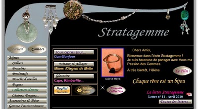 Très vite, je suis passée aux photos sur CD. Le CD s’est pas mal baladé lui aussi. Plus léger, je l’emportais partout. Mais le problème avec lui, c’était la mise à jour… Quel temps passé pour avoir la collection complète sur le CD… Jusqu’au jour où j’ai décidé de créer un site pour présenter ma collection de bijoux. Pour une informaticienne, c’était un comble d’utiliser des CD et cela devenait incontournable de créer un vrai site ! J’ai appris à « bricoler » pour réaliser des pages html et j’ai créé https://www.stratagemme.com/ premère version enrichie au fil de l’eau…